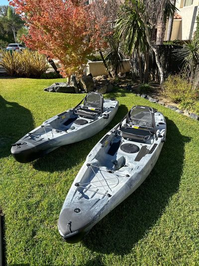 We use Hobie Mirage Drive kayaks exclusively from Fast Lane Sailing and Kayak. You will be fishing from either a 2024 Hobie Passport 12.0 R or a 2022 Hobie Outback. Each kayak will be outfitted with an NRS personal floatation device; marine VHF radio; paddle; dry bag; safety whistle; live bait containers or Hobie livewell (as necessary); fish grips; and pliers. These kayaks also have a dry compartment where you can store your cell phone or other valuables. In addition to the equipment on client kayaks; your guide will be carrying a gaff; net; game clip or game bag; and terminal tackle. Your guide may also be operating a motorized kayak should anyone need assistance getting back to the ramp.